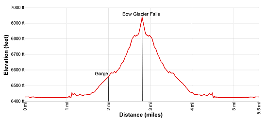 6,940-ft. at Bow Glacier Falls - Elevation Gain: 520-ft. to Bow Glacier Falls